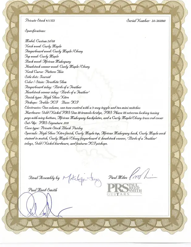 11372 и 24-384860Древесина для этой гитары была отобрана из хранилища PRS Private Stock.