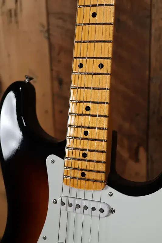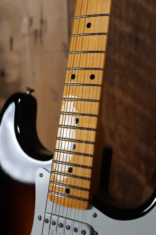 В первые годы после революционного дебюта Stratocaster в 1954 году инструмент претерпел небольшие изменения и доработки, которые помогли окончательно закрепить его репутацию как самой лучшей электрогитары всех времен. Винтажный кастом Stratocaster 1955 года имеет несколько интересных и редких особенностей, которые, по нашему мнению, отражают лучшее из истоков Strat и дают представление об инновациях, сыгравших ключевую роль в его развитии. Лак с эффектом NOS позволяет гитаре «дышать» и демонстрирует естественную текстуру древесины через широкое постепенное окрашивание 2-Color Sunburst. Гриф оснащен винтажным компаунд-радиусом 7,25"-9,5", который мы встречали только на некоторых редких экземплярах, придавая ему уникальное ощущение даже среди моделей с винтажной стилистикой. Также гриф оснащен медиум-винтажными ладами, которые немного больше стандартного винтажного размера и очень удобны для игры играть.