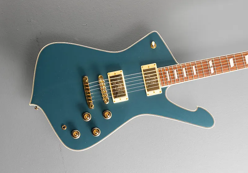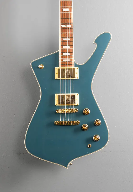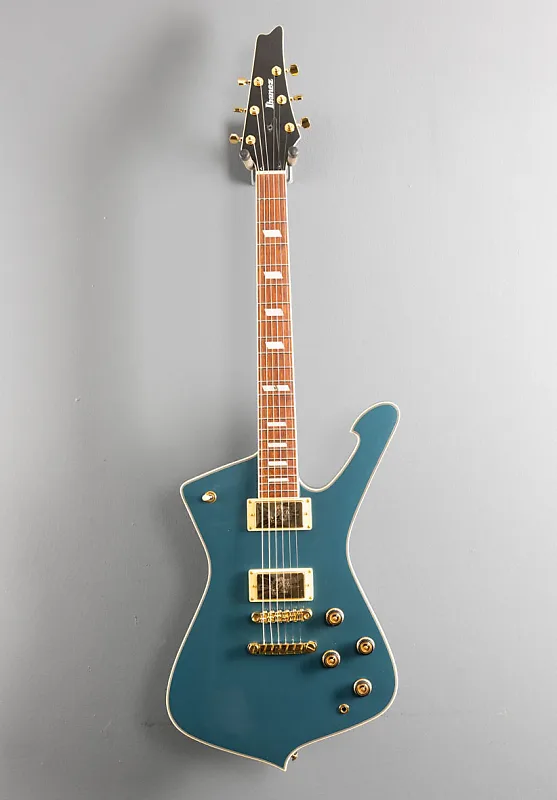 Античный синий металлик, корпус из окоуме, гриф из ятобы с радиусом 12 дюймов, инкрустации из акрила и перламутра, средние лады на грифе из окоуме в форме IC, длина мензуры 24,75 дюйма, ширина грифа у верхнего порожка 1 11/16 дюйма, звукосниматели Ibanez Super 80 для бриджа и грифа, 3-позиционный переключатель с регуляторами громкости и тембра для каждого звукоснимателя, мост Gibraltar Performer и хвостовик Quik Change III, закрытые колки, вес 3,7 кг, в комплекте чехол.