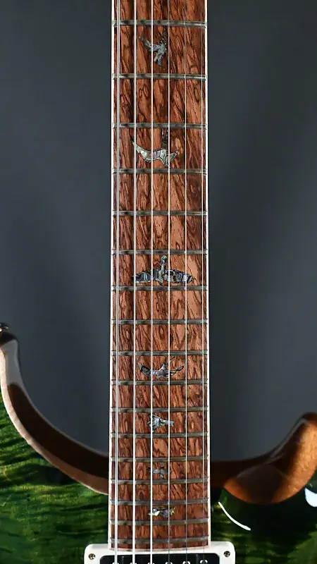 Инкрустация ладовой доски: Птицы из пауа с зелеными вставками из отборного абалона