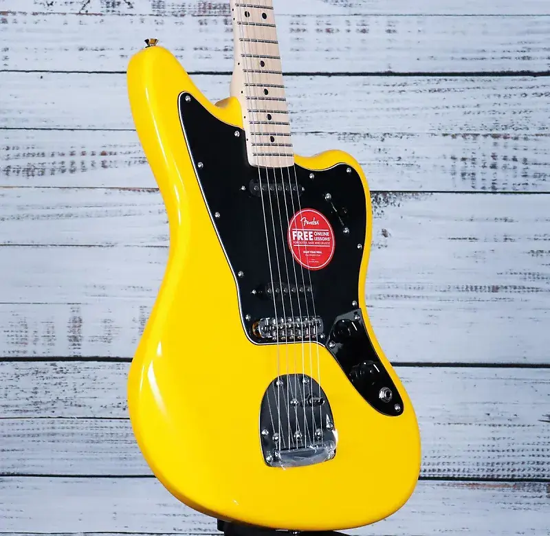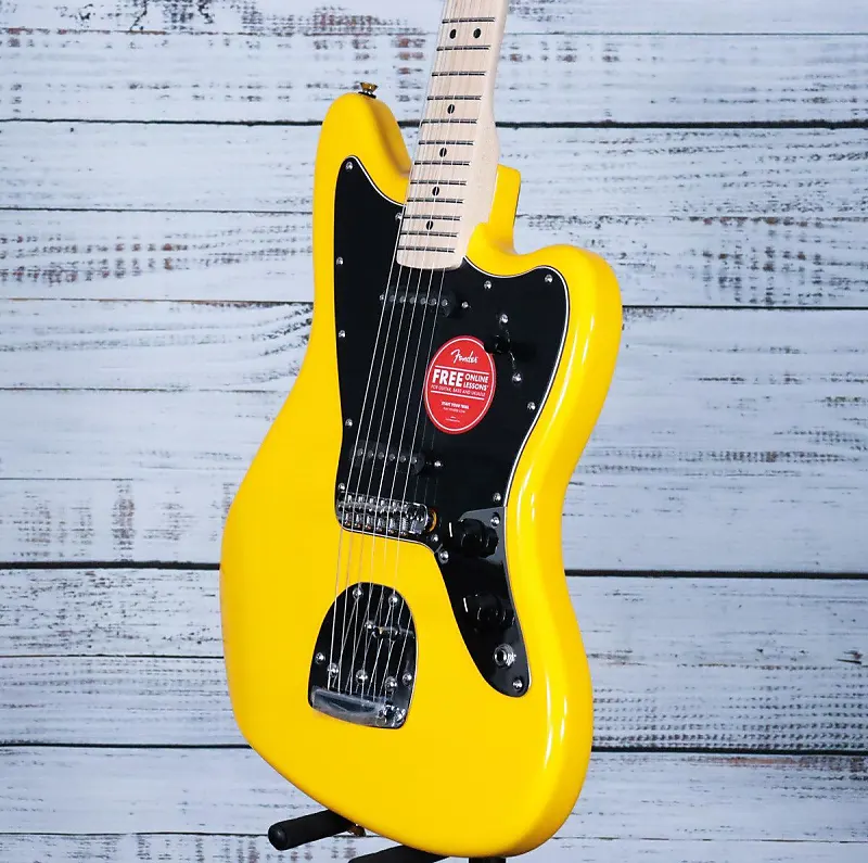 Электрогитара Squier Affinity Series Jaguar в цвете Graffiti Yellow предлагает классическое смещенное тело с яркой отделкой, идеально подходящей для музыкантов, ищущих стиль и универсальность. Оснащенная одно-капсюльными звукоснимателями, она обеспечивает яркое и четкое звучание, идеально подходящее для серф-, инди- и альтернативных жанров. Более короткая мензура и удобный профиль грифа обеспечивают отличную играбельность, делая инструмент подходящим как для начинающих, так и для опытных музыкантов. Эта модель сочетает культовый дизайн с надежной производительностью, обеспечивая динамичный музыкальный опыт.