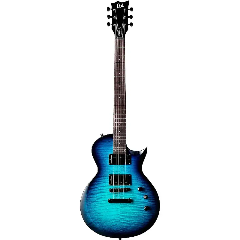 Характеристики • Конструкция: Болтовое соединение • Мензура: 24,75" • Корпус: Тополь • Верх: Клен с эффектом огня • Гриф: Жареный клен • Грифовая накладка: Палисандр • Радиус грифовой накладки: 350 мм • Отделка: Синий градиент • Ширина порожка: 42 мм • Тип порожка: Формованный • Контур грифа: Тонкий U • Лады/Тип: 24 XJ • Цвет фурнитуры: Черный • Крепление ремня: Стандартная кнопка • Колки: LTD • Мост: TOM и хвостовой блок • Звукосниматель грифа: ESP LH-150N *(Выбор тона для разделения) • Звукосниматель моста: ESP LH-150B *(Выбор тона для разделения) • Электроника: Регулятор громкости/тона (выдвижной/пуш-пул)/Переключатель • Струны: D'Addario YB-XL110 (.010/.013/.017/.026/.036/.046) • Чехол: EC GUITAR FORM FIT CASE (чехол не входит в комплект)