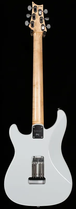 Некоторые из наиболее характерных спецификаций включают форму головки грифа, колки, конструкцию грифа и накладки на гриф, мост, а также звукосниматели и электронику. Форма головки грифа основана на фирменном дизайне PRS, но инвертирована, чтобы соответствовать стилю игры Майера и поддерживать одинаковую длину струн за порожком, что облегчает настройку. Колки выполнены в традиционном винтажном стиле с закрытой задней крышкой, но с фирменным конструктивным замком PRS. Форма грифа была смоделирована инструменты периода после 1963/1964 годов, а радиус грифа составляет 7,25 дюйма. В тот момент, когда вы берете этот гриф в руку, он просто ощущается правильно. Как и колки, стальной тремоло обладает классическим дизайном и включает в себя рычаг тремоло PRS и винты ножевого типа Gen III. Мост на Silver Sky настроен заподлицо с корпусом в нейтральном положении, так что тремоло-мост только понижает строй. Сохраняя контакт моста с корпусом, гитара акустически звучит громче, что улучшает отношение сигнал-шум у сингл-койлов. Сингл-койл-звукосниматели 635JM звучат очень округло и полно, с музыкальным верхним регистром, который никогда не бывает «ледяным» или резким.