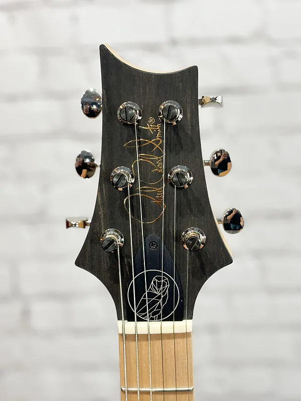 Другие особенности включают стальную PRS мостовую пластину, винтажные блокирующие колки, кость в толстом порожке и логотип Кеннеди «Геометрическая сова» из его сольного релиза «Ides of March», символизирующий мудрость и приспособляемость.