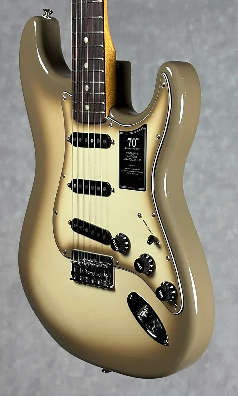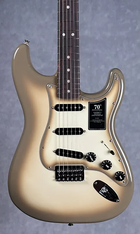•Возродите дух 70-х годов с 70-летием Vintera II Antigua Stratocaster. 70th Anniversary Vintera II Antigua Stratocaster демонстрирует нашу культовую отделку Antigua, дополненную расписанной вручную подходящей защитной гардой. Корпус из ольхи обеспечивает классический тон Fender, полный удара и ясности. U-образный кленовый гриф основан на классическом профиле 70-х годов и обеспечивает удивительно комфортное ощущение, в то время как палисандровый гриф радиусом 7,25 дюйма с винтажными высокими ладами обеспечивает винтажную играбельность с большим запасом для широких изгибов и выразительного вибрато. Под корпусом вы найдете три звукоснимателя 70-летнего юбилея в винтажном стиле '70s Single-Coil Strat, которые обеспечивают идеальное сочетание теплоты и резкости. Настройки под винтажный стиль с печатью «F» и винтажный хамбакер-мост с блоковыми седлами гарантируют устойчивость настройки струн.