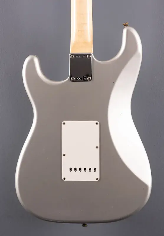 Стареющее серебро Inca, корпус из ольхи, дека 60-х годов, овальная шеи C-образной формы из клена с радиусом 9,5″, гриф из палисандра класса AAA с медиум-джамбо ладами, длина мензуры 25,5", ширина верхнего порожка 1,650", ручные звукосниматели Strat 1960 Relic, переключение на 5 позиций с проводкой vintage mod #1, толщина грифа .80" на первом ладу и .94" на 12-м ладу, вес 7,8 фунтов, в комплекте с жестким футляром Fender Custom Shop