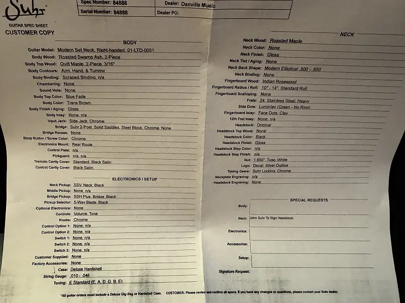 Продается совершенно новый Suhr Custom Modern Set Neck в цвете Blue Fade. Эта гитара - лимитированная серия Suhr, лично подписанная Джоном Суром. Оснащена верхом из кленового шпона, корпусом из термодревесного вяза, грифом из термоклена и накладкой из палисандра. Поставляется с оригинальным жестким кейсом, тремоло, аксессуарами и спецификацией. Danville Music является авторизованным дилером Suhr, вы можете покупать с уверенностью, а инструмент поставляется с пожизненной гарантией Suhr. Мы инспектируем и профессионально настраиваем каждый инструмент, который продаем, чтобы вы могли покупать с уверенностью и влюбились в свой новый инструмент. Не стесняйтесь писать нам с любыми вопросами.