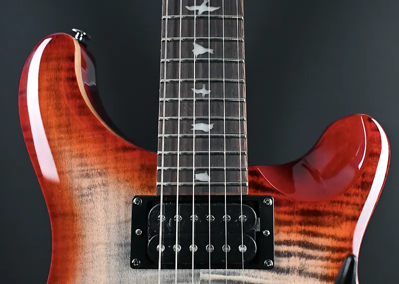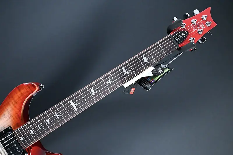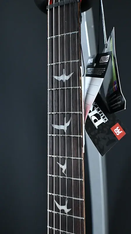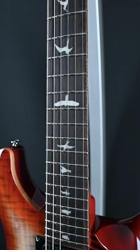 Классические элементы дизайна включают крышку из клена, заднюю часть из красного дерева, гриф из розового дерева, 24 лада, мензуру 25 дюймов, инкрустацию в виде птиц, фирменное лого на головке грифа и запатентованный PRS тремоло.