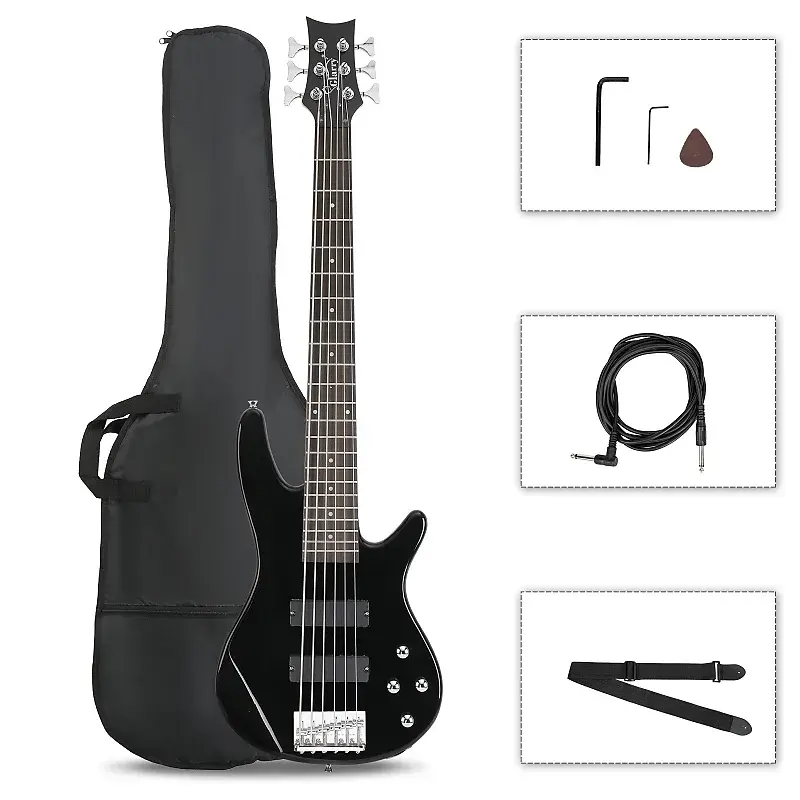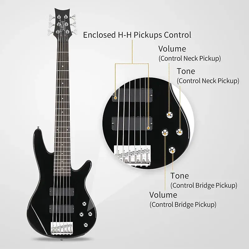 Бас-гитара Glarry GIB с 6 струнами Full Size HH - черная 27 576₽