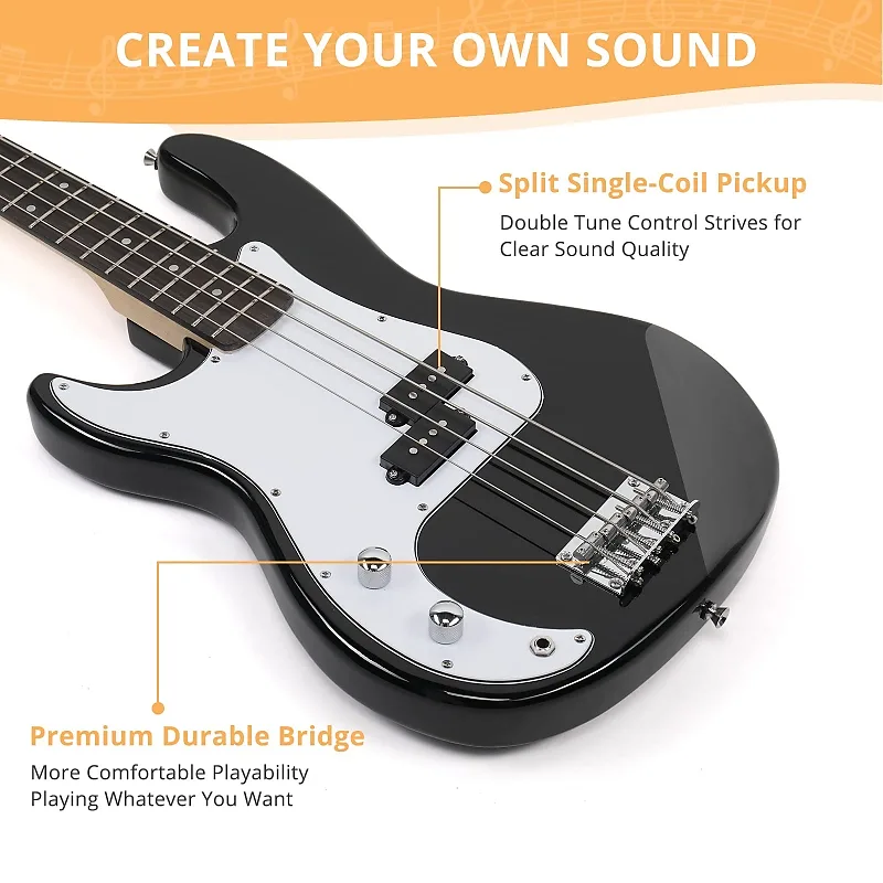 Благодаря разделенным сингловым звукоснимателям, регуляторам громкости и тембра, эта бас-гитара в стиле PB может исполнять музыку от блюза до рока. Более толстые стальные струны и повышенное натяжение струн обеспечивают стабильную настройку и лучшее звучание по сравнению с обычными гитарами.