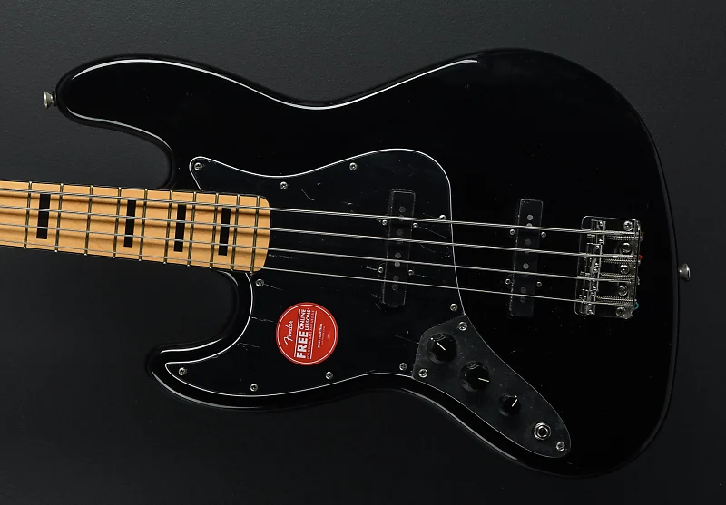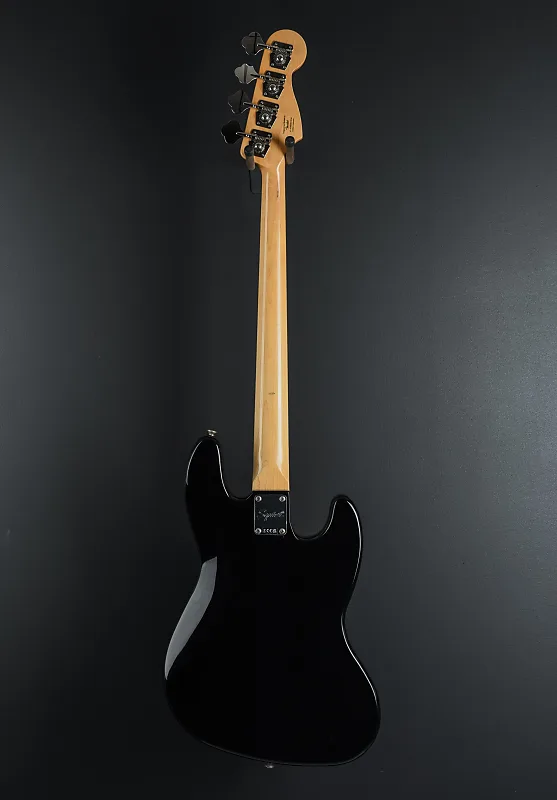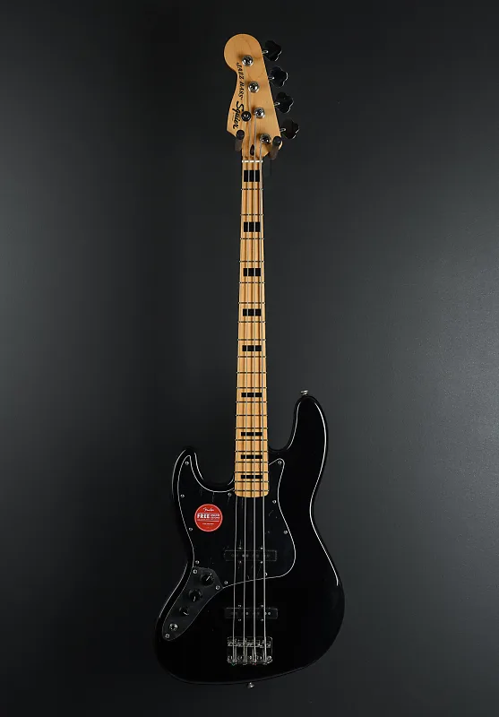 Черный, изготовлен в Индонезии, корпус из тополя, глянцевая полиэфирная отделка корпуса, C-образный кленовый гриф с кленовым грифом радиусом 9,5 дюйма, инкрустации черным блоком и узкие высокие лады, длина мензуры 34 дюйма, ширина порожка 1,5 дюйма, однокатушечные звукосниматели Alnico Jazz Bass от Fender с регуляторами громкости/громкости/тембра, винтажный стиль мост и тюнеры в винтажном стиле, 8,4 фунта, футляр не включен