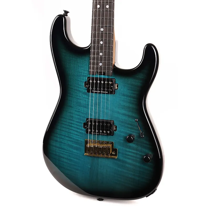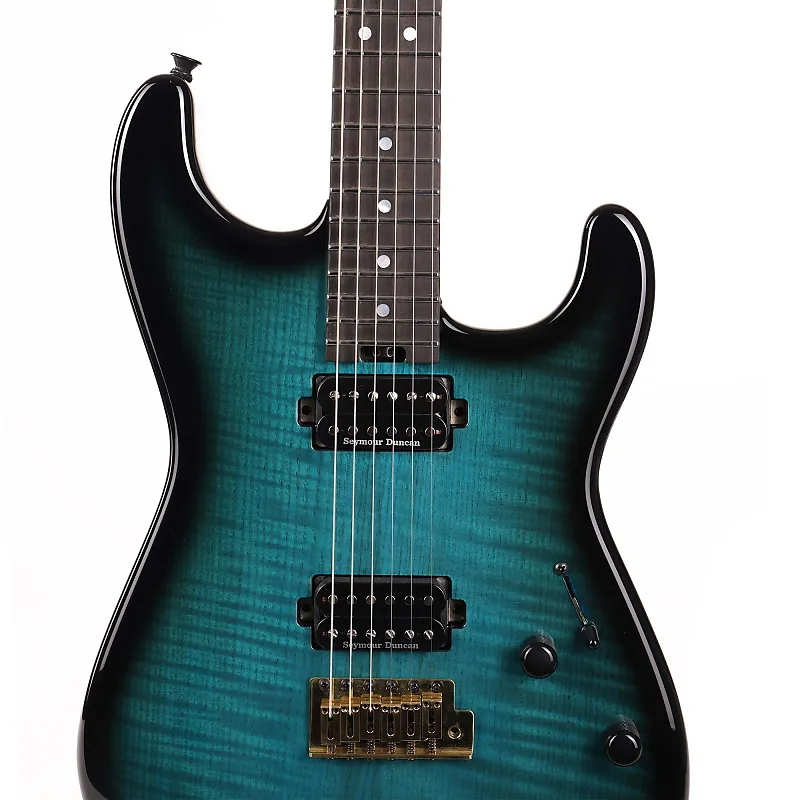 Для тех, кто ищет необычную гитару San Dimas - это может быть именно то! Модель Custom Shop с уникальной отделкой Trans Aqua Burst на корпусе из столь же необычной древесины: пламтящий сассафрас! Гитара оснащена болтовой грифовой декой из фигурного коки с профилем Tommy, темной накладкой из эбена на 22 ладах и джамбо-ладками из нержавеющей стали. На темной сцене помогут ориентироваться синие индикаторные точки Luminlay на боковой части грифа. Звук обеспечивают хамбакеры Duncan JB и Jazz, а аппаратное оснащение выполнено в классическом стиле с латунным тремоло Charvel!