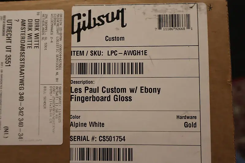 Совершенно новая гитара Gibson Custom Les Paul Custom Alpine White модели Custom Shop