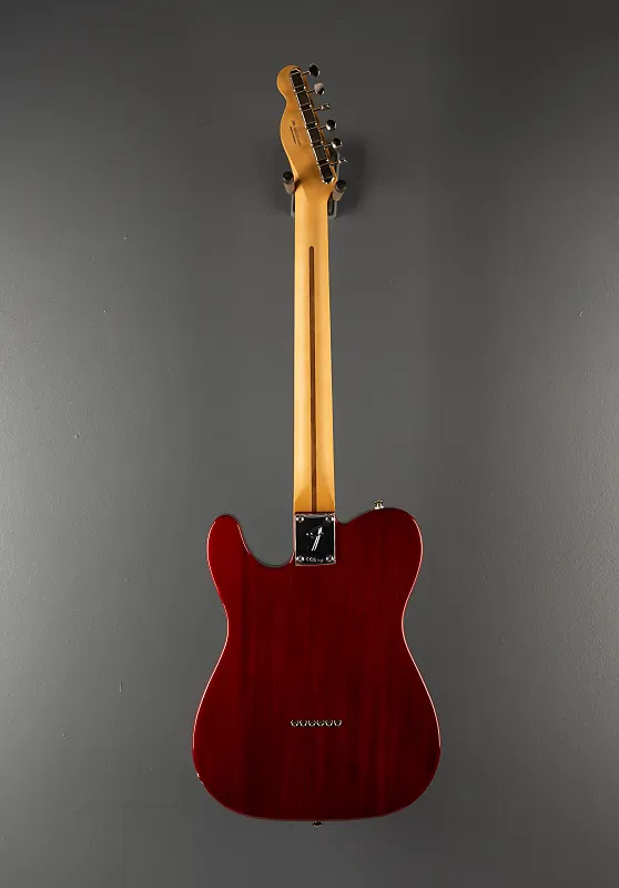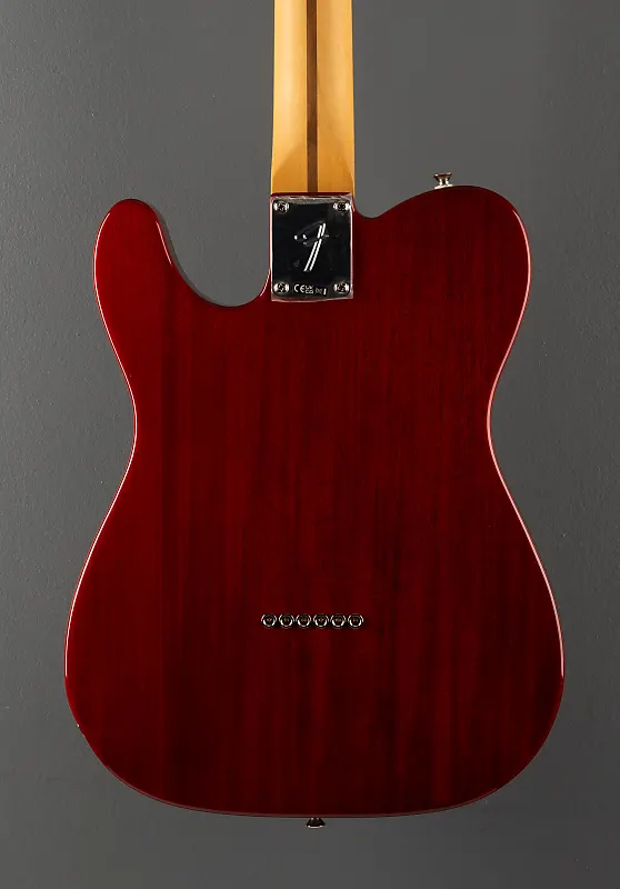 Прозрачная вишня, корпус из камерного красного дерева, гриф с радиусом 9,5 дюйма из розового дерева с точками инкрустации и ладовыми порожками Medium Jumbo на современном C-образном грифе из клена с закругленными краями грифа, длина мензуры 25,5 дюйма, ширина верхнего порожка 1,650 дюйма, звукосниматели Player Series Alnico 5 Tele Single-Coil для моста и грифа, 3-позиционный переключатель с регулировкой громкости и тона, 6-седловый мост Tele с креплением струн через корпус и стальными седлами блока, колки Fender Classic Gear, вес 2,6 кг, чехол не входит в комплект.