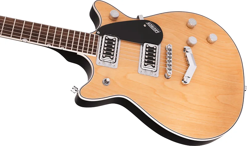 Совершенно новая G5222 Electromatic Double Jet BT V-Stoptail обеспечивает мощность Broad'Tron с классической четкостью Jet. В основе каждой Electromatic Jet BT находится корпус из камерного махагона с верхней декой из клена, который обеспечивает богатый, выразительный средний диапазон, подчеркивающий глубокие низкие и сверкающие высокие частоты. Пара звукоснимателей Black Top Broad'Tron усиливает звук камерного корпуса из махагона с верхом из клена через плотный, агрессивный овердрайв, при этом сохраняя удивительную четкость и баланс нот, подходящий для чистого звучания. Electromatic Jet BT оснащена необходимыми функциями, обеспечивающими полный контроль над тоном. Комбинация индивидуальных регуляторов громкости для каждого звукоснимателя, главный регулятор тембра и громкости с цепью treble bleed обеспечивает интуитивное управление всеми настройками звукоснимателей и тембра.