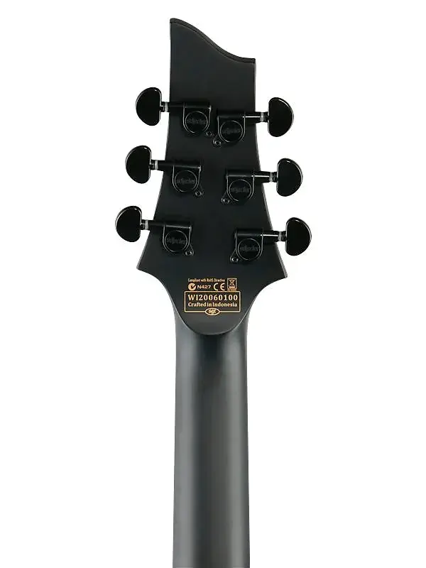 Гриф из клена с накладкой из палисандра, тонкая форма грифа C, радиус 14”, длина мензуры 25,5”, 24 экстравеликие лады - все это создано для скорости, отличного звучания и легкости игры. Молниеносные пассажи, арпеджио и хаммер-оны теперь проще, чем когда-либо. Фигурные индексы в виде летучей мыши из перлоида украшают этот грозный инструмент.