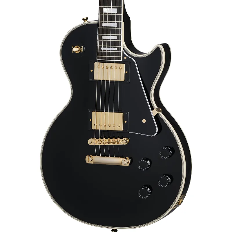 В рамках продолжающегося сотрудничества с Gibson Custom, компания Epiphone с гордостью представляет флагманскую модель Les Paul Custom в линейке Inspired by Gibson Custom. Эта прекрасная гитара имеет все элегантные атрибуты «смокинга», которыми известна эта модель: цельномахагоновую шейку с профилем 50-х Rounded C, гриф из черного дерева и накладки из перламутра. Также на головой части грифа в стиле «открытая книга» имеются накладки из перламутра в виде разделенного ромба и логотипа Epiphany. Золотая фурнитура, включая колки Grover Rotomatic с передаточным числом 18:1, добавляет еще больше визуальной привлекательности. Корпус из цельного махагони с кленовой накладкой придает дополнительное звучание, а звукосниматели Gibson USA 490R и 498T обеспечивают тональную изысканность и достаточную мощь, чтобы подчеркнуть всю красоту гитары. Они ручной проводки до потенциометров CTS, разъема Switchcraft и переключателя звукоснимателей, а также конденсаторов Mallory. Модель Inspired by Gibson На задней части головки грифа находится фирменный логотип Double Diamond, а также в комплект входит черный жесткий футляр с логотипом Inspired by Gibson Custom и внутренней отделкой золотисто-желтого цвета.