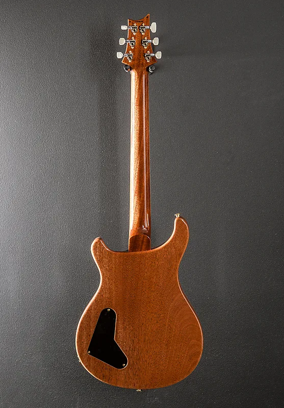 Yellow Tiger, высокоглянцевое нитро-покрытие, верх из кленового шпона Flame Maple 10, корпус из махагони, вырезанная по узору шея из махагони, накладка грифа из палисандра с радиусом 10" с инкрустациями Bird и имитацией окантовки из кости, длина мензуры 25", ширина грифа у верхнего порожка 1 11/16", звукосниматели PRS McCarty LT для моста и шеи, 3-позиционный переключатель с регуляторами громкости и тоном с функцией push/pull для разделения катушек, мост PRS stoptail с латунными вставками, тюнеры PRS винтажного типа без блокировки с крыловидными кнопками, вес 7,4 фунта, с жестким футляром