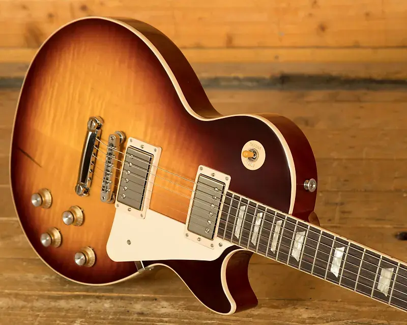 С корпусом из махагони, эта Les Paul оснащена верхней дека из клена класса AA, создавая идеальное сочетание древесины для превосходного звучания. Богатая и сверхрезонансная, она предлагает премиальный тон и вечную эстетику, а отделка Bourbon Burst выглядит на миллион долларов и действительно позволяет дереву «дышать» и естественному тону проявляться.