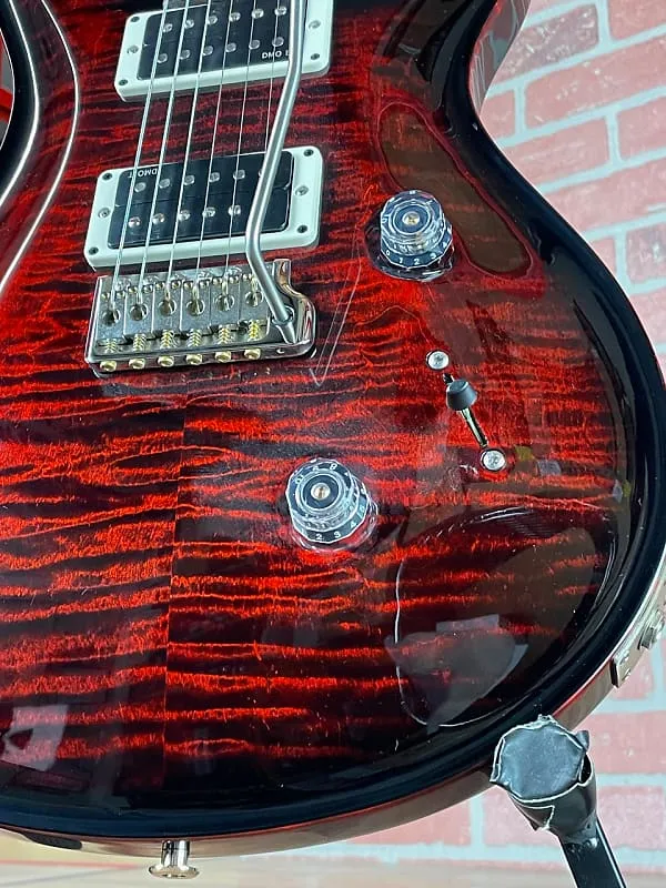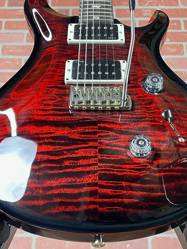 PRS Custom 24 демонстрирует прекрасно фигурную крышку из клена, резную поверх резонансного корпуса из красного дерева, отделанную захватывающим Fire Smokeburst с глянцевым лаком на основе нитроцеллюлозы, который подчеркивает естественные узоры древесного огня. Эта культовая комбинация древесины обеспечивает отличную сустейн, богатое гармоническое содержание и идеальный баланс тепла и яркости. сделал Custom 24 незаменимым инструментом для студийной и концертной работы на протяжении десятилетий.