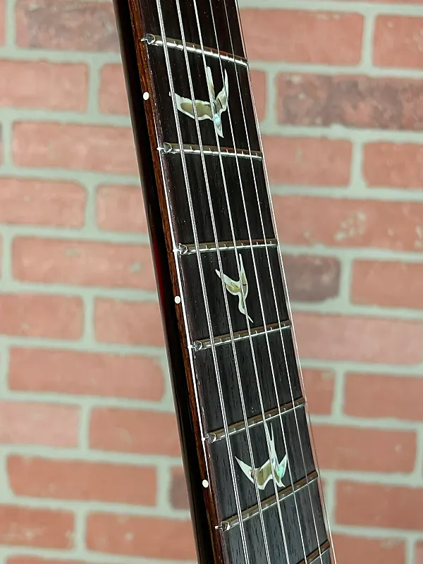 Шея из махагони имеет удобный профиль Pattern Thin от PRS, обеспечивая выдаемую играбельность для технических пассажей и длительных сессий игры. Встроенная в корпус для превосходного резонанса и сустейна, шея оснащена гладкой накладкой на гриф из палисандра с фирменными инкрустациями птиц PRS. С 24 идеально обработанными никелевыми ладами и радиусом 10 дюймов, Custom 24 обеспечивает легкость игры по всей длине грифа.