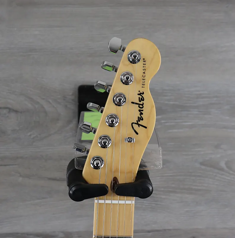 Предмет на изображении: стандартный Telecaster, накладка грифа из клена, белый пикгард, цвет Aqua Marine Metallic
