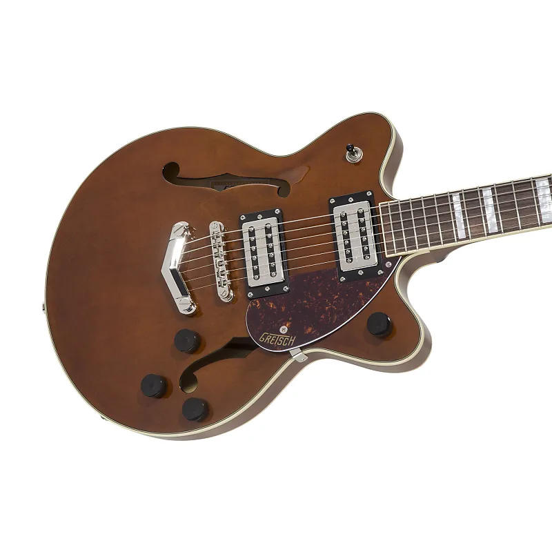 Весь классический эффектный стиль, который вы ожидаете от Gretsch, здесь - винтажные черные ручки управления, увеличенные F-дырки для акустической проекции, элегантная состаренная белая окантовка с улучшенным пайлингом, блестящая никелевая фурнитура, трехслойный черепаховый пикгард и арочная конструкция из ламинированного клена. Легко играть, наслаждаясь рок-выступлением благодаря меньшему корпусу, G2655 является феноменальным инструментом для современного музыканта, который хочет контролировать сцену и аудиторию, выделяясь из толпы.