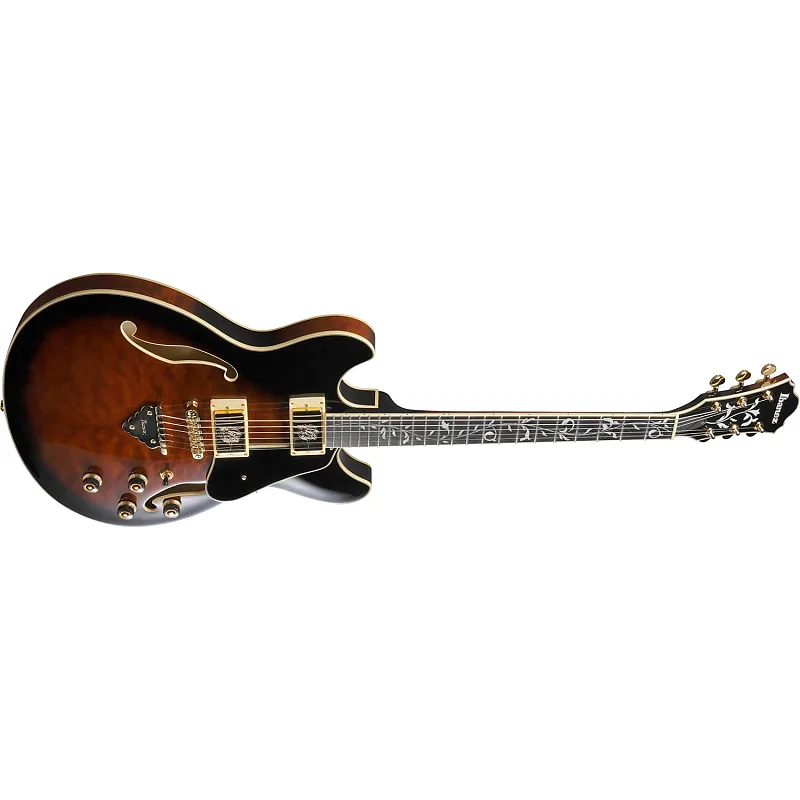 • тип грифа: AS Expressionist - 3-частный гриф Nyatoh/Maple, установленный в корпус • верх/задняя часть/бока: верх из кленового фламинга, задняя часть из кленового фламинга, боковые части из кленового фламинга • накладка на гриф: окантованная накладка из макуссара с инкрустацией Tree of Life • лад: средний • количество ладов: 22 • мост: Gibraltar Performer • расстояние между струнами: 10.5 мм • хвостовик: Quik Change Classic • звукосниматель у грифа: Super 80 (H) - пассивный/керамический • звукосниматель у моста: Super 80 (H) - пассивный/керамический • заводская настройка: 1E, 2B, 3G, 4D, 5A, 6E • струны: D'Addario EXL140 • калибр струн: .010/.013/.017/.030/.042/.052 • цвет аппаратуры: золотой