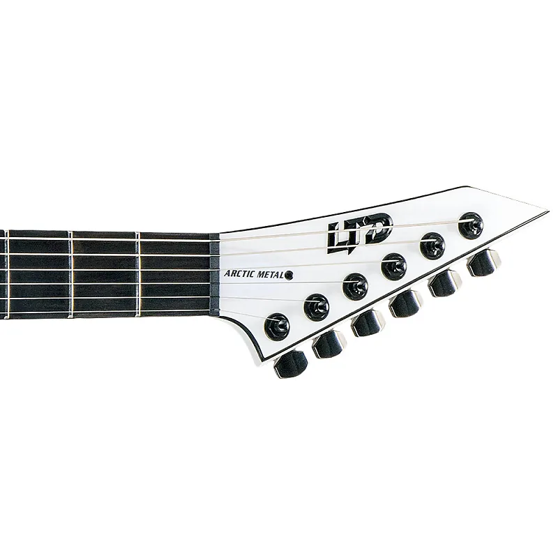 ESP LTD M-HT Arctic Metal сохраняет ту же дизайнерскую концепцию серии LTD Black Metal, изменяя цветовую гамму с самого темного черного на холодные оттенки замерзшей пустоши. По качеству сборки инструменты Arctic Metal сопоставимы с серией LTD Deluxe “1000 Series”, имеют матовую отделку Snow White Satin, один премиальный звукосниматель с белой крышкой, а также накладки грифа из эбена Макассар без инкрустации и со светящимися боковыми маркерами.