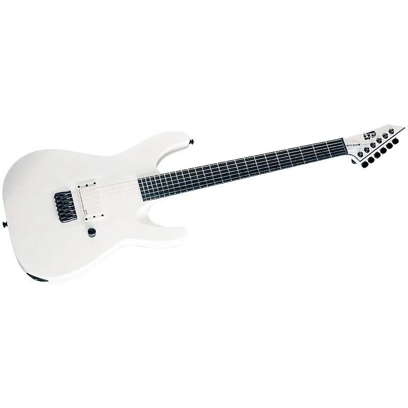 Гриф выполнен из эбена Маккасар с 24 сверхбольшими ладами из нержавеющей стали для максимальной удобства игры.Звукосниматель - агрессивный EMG 81TW с двойным режимом. Это инновационный активный трехкатушечный дизайн, что означает, что звук одной катушки также бесшумен. Звукосниматель и монтажное кольцо белого цвета, а на звукоснимателе есть черный логотип. Один регулятор громкости с функцией push-pull позволяет использовать режим разделенной катушки. Другие особенности включают мост Hipshot с конструкцией через корпус и блокирующие колки LTD.Технические характеристикиТОЛЬКО ДЛЯ США: