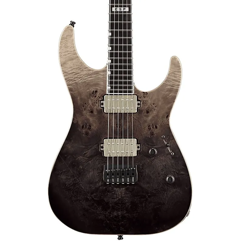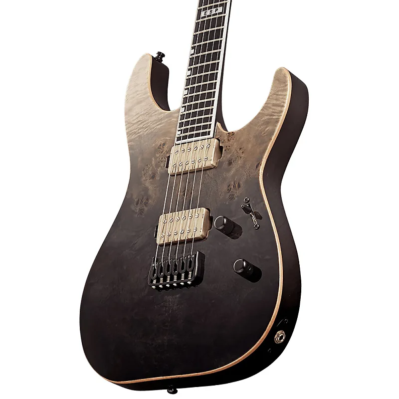 Электрогитара ESP E-II M-II NT Black Natural Fade E-II M-II/NT/BM/HS/BLKNFD, Сделано в Японии! Серия ESP E-II M, премиальные породы древесины, масштаб 25,5”, корпус из махагона, верх из кленового капа, 3-частная грифовая конструкция Set Thru из клена, накладка грифа из черного дерева, 24 экстратолстых ладa, звукосниматели Bare Knuckle Aftermath Tyger, мост Hipshot String Thru, черная фурнитура, черный натуральный градиентный лак, голова грифа в цвет корпуса, футляр ESP в комплекте.