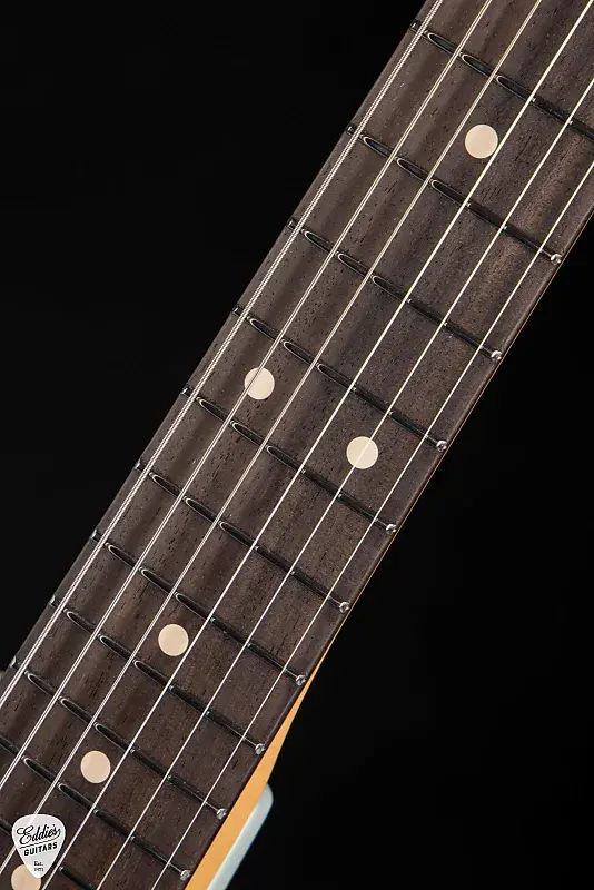 Гриф из клена с грифовой накладкой из палисандра придает теплоту и четкость звучания, в то время как профиль грифа 60's C Vintage Standard (.810-.930) обеспечивает превосходное ощущение сломанного и обкатанного инструмента. Завершенный тонким винтажным оттенком, гриф излучает старомодное очарование. Композитный радиус 9" - 12" и стандартная закругленность грифовой накладки обеспечивают оптимальный баланс между легкое аккордовое и плавное соло-исполнение, в то время как глиняные боковые и лицевые точки придают классический штрих.