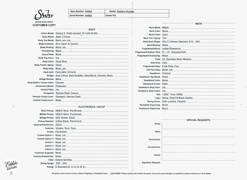 Для получения дополнительной информации о Suhr Classic S, пожалуйста, свяжитесь с нами.