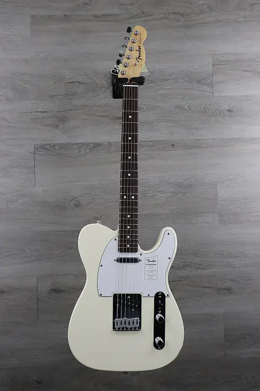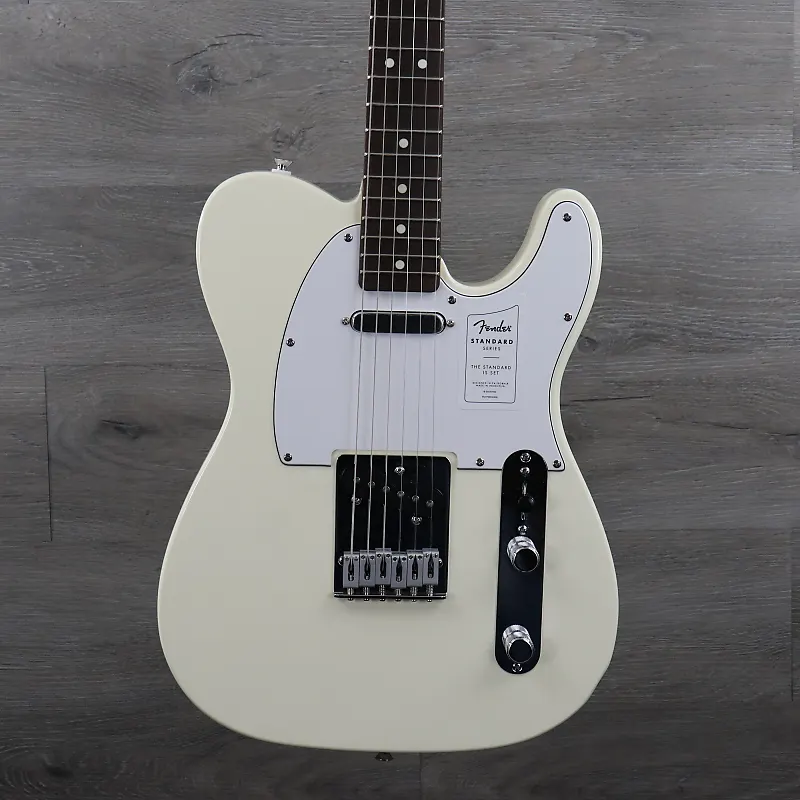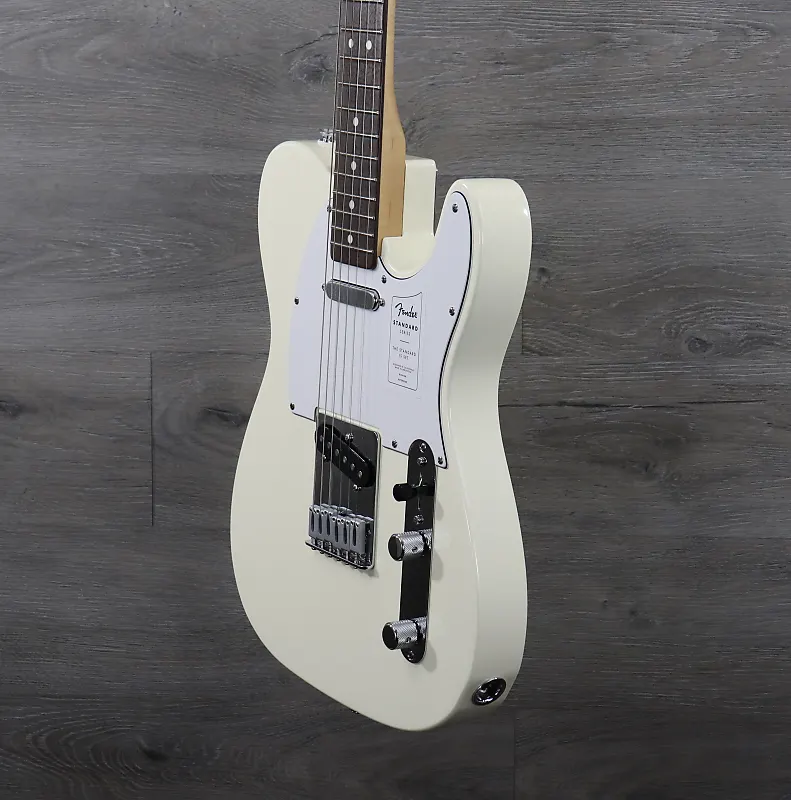 Показанный элемент: Стандартный Telecaster, Лавровый гриф, Белый пикгард, Олимпийская белая