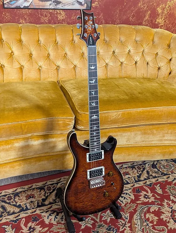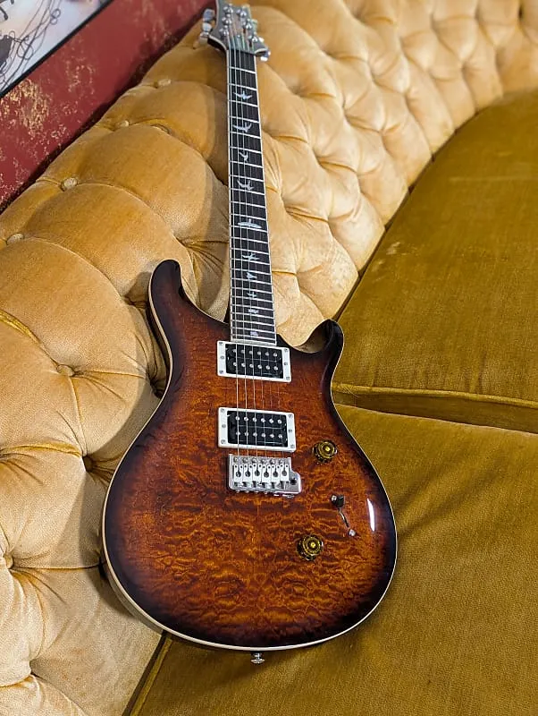 PRS SE Custom 24 Quilt переносит оригинальный PRS в более доступную серию SE с добавлением верхней фанеры из кленового шпона с рисунком «квилт» и подходящей кленовой фанеры на головке грифа. Полированная эстетика этой модели придает гитаре сценический стиль, сочетающийся с ее надежностью для концертов.