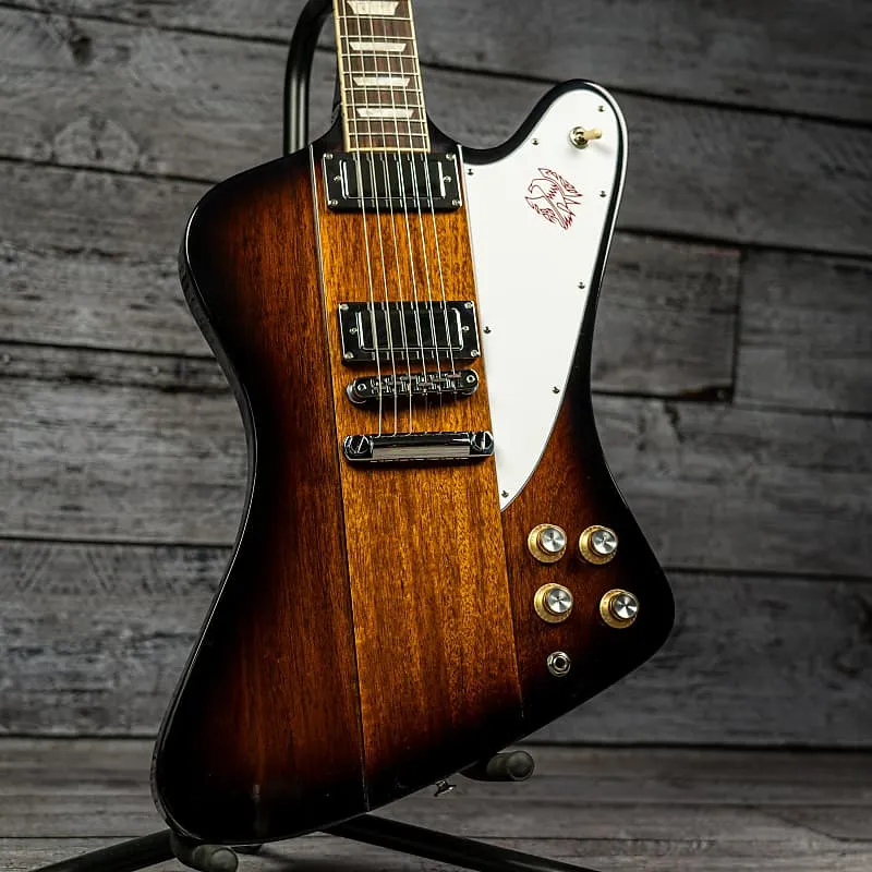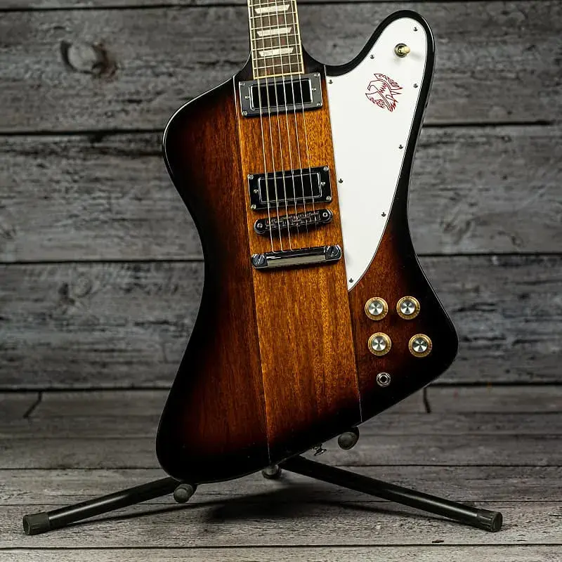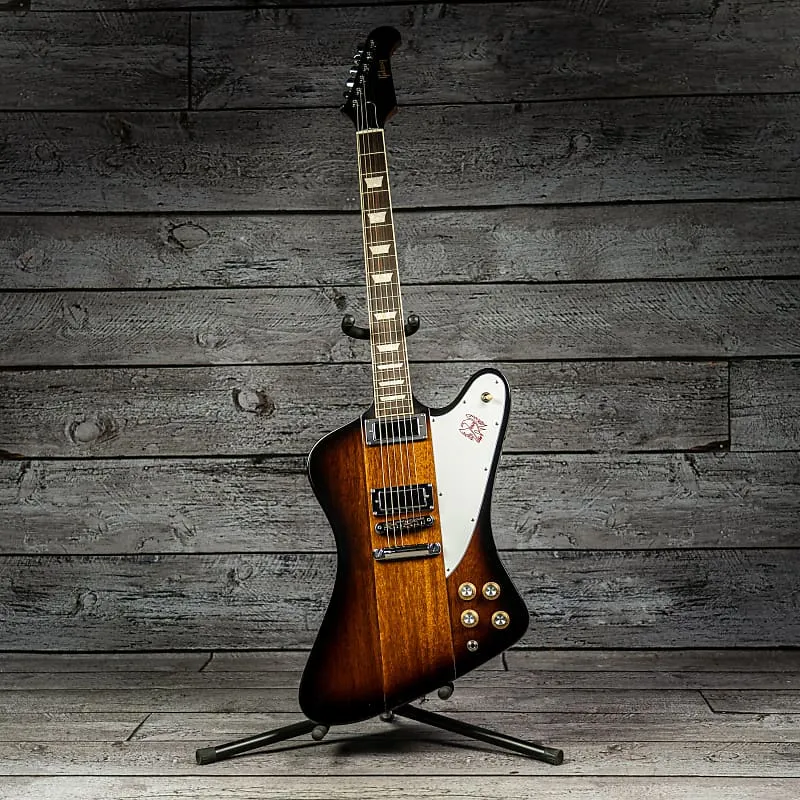 Gibson Firebird Platypus сочетает элементы обратного и обычного Firebird с современными улучшениями. Особенности включают корпус из красного дерева, конструкцию с вклеенным грифом, профиль SlimTaper и характерный головной порожек в форме утконоса. Аутентичное звучание 60-х обеспечивают мини-хамбакеры Firebird с магнитами Alnico V и отдельными регуляторами. Премиальные компоненты включают колки Grover Mini Rotomatics, порожек Graph Tech и бридж Nashville Tune-o-matic. Оформление грифовой доски из розового дерева с инкрустацией Трапеция и графическим пикападом Firebird завершает этот уникальный инструмент от Gibson.