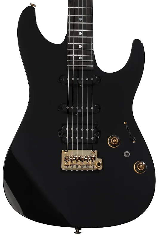 Электрогитара с массивным корпусом из липы, гриф из клена, накладка на гриф из черного дерева, 1 хамбакер, 2 сингловых звукоснимателя и тремоло Gotoh - черная.