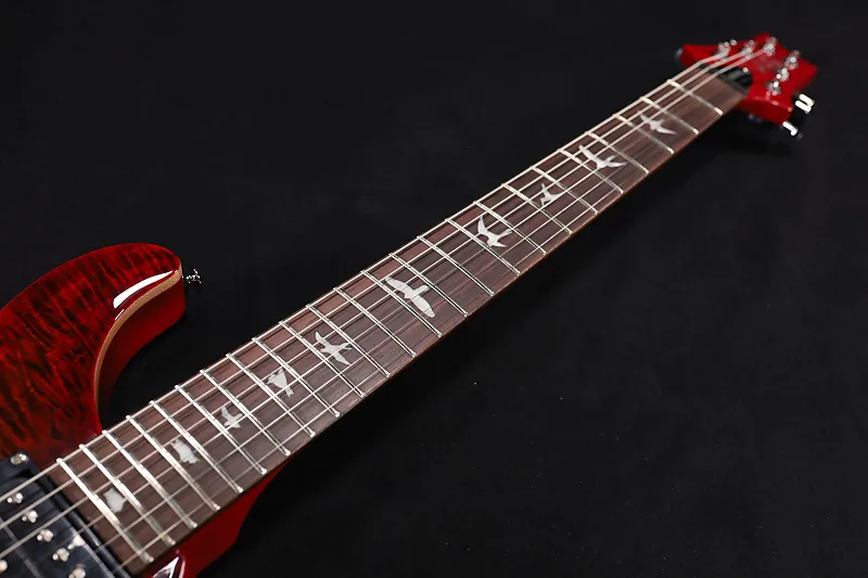 SE Custom 24 переносит оригинальную платформу дизайна PRS в качественную, более доступную линейку инструментов SE. Играть на ней могут как международные туровые артисты, так и концертные музыканты или начинающие исполнители. SE Custom 24 оснащена кленовой крышкой, корпусом из красного дерева, широким тонким кленовым грифом, пальцевой доской из розового дерева с инкрустацией в виде птиц и запатентованным PRS тремоло-мостом. Универсальные звуки создаются с помощью звукоснимателей 85/15 “S” в сочетании с регулятором громкости, управлением тона push/pull и 3-позиционным переключателем звукоснимателей.
