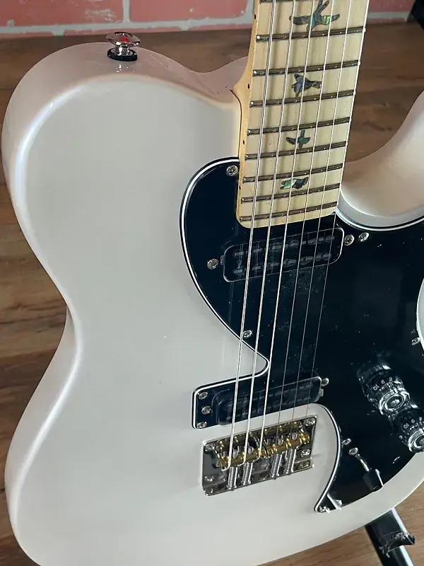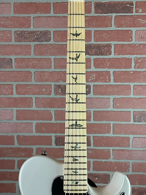 Премиальная фурнитура включает стальную мостовую пластину, разработанную PRS, с латунными седлами-бочонками, которые улучшают сустейн, интонацию и общую чистоту звучания. Высокоглянцевое полиуретановое покрытие белого жемчужного цвета не только защищает инструмент, но и создает эффектный внешний вид, выделяющийся на любой сцене или в любой студийной обстановке.