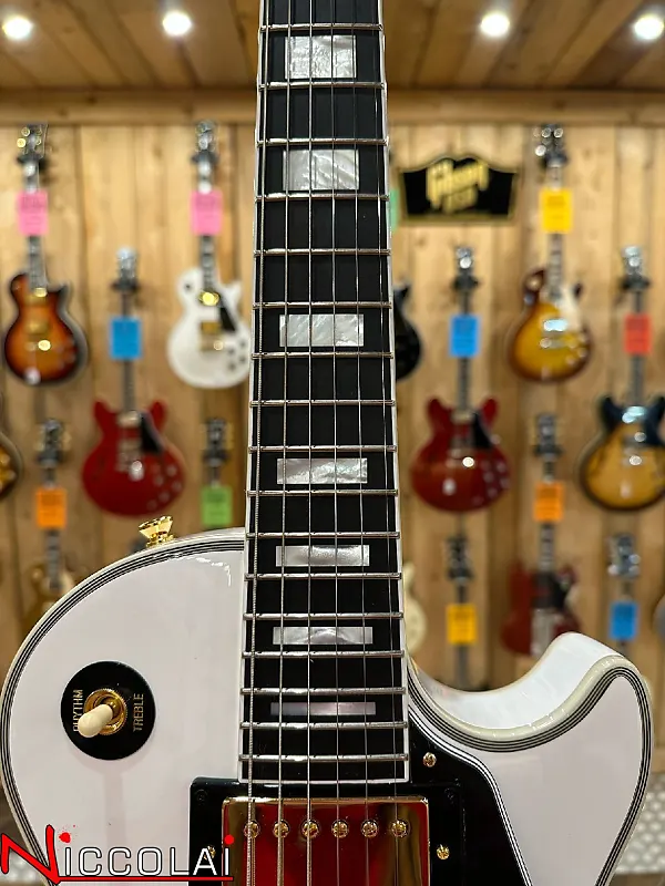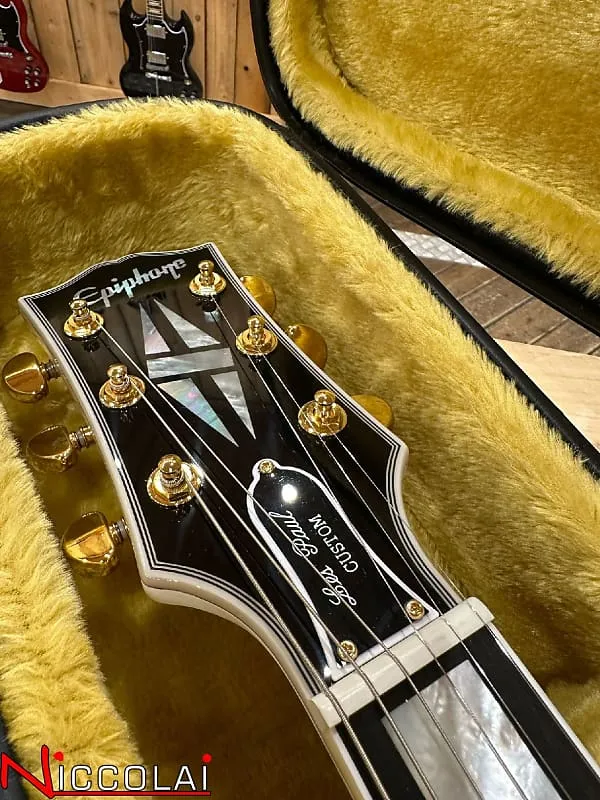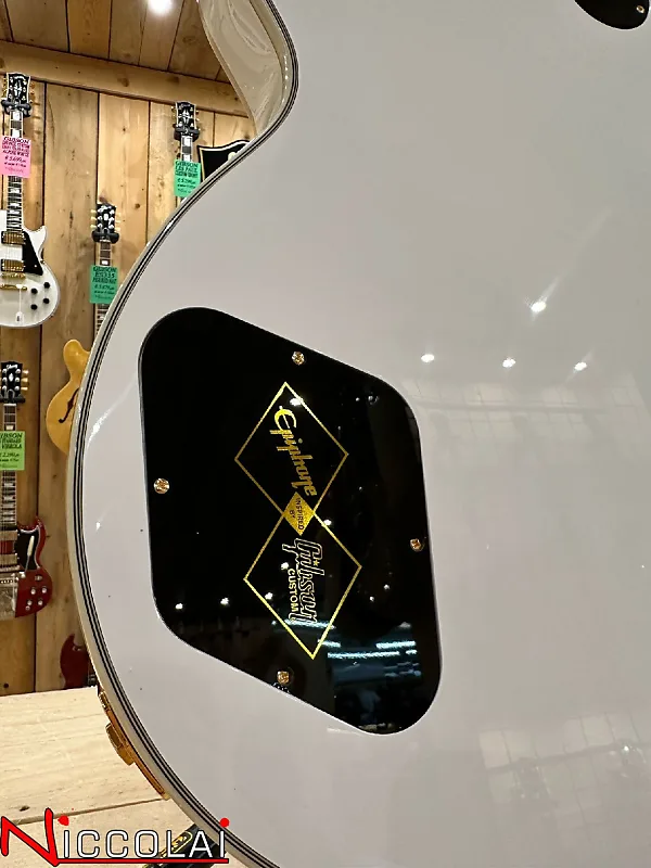В рамках продолжающегося сотрудничества с Gibson Custom компания Epiphone с гордостью представляет флагманскую модель Les Paul Custom в линейке Inspired by Gibson Custom. Эта великолепная гитара, обладающая всеми элегантными деталями в стиле «смокинга», которыми известна эта модель, оснащена цельным грифом из махагони с закругленным средним профилем C в стиле 50-х, накладкой на гриф из эбенового дерева и инкрустациями из перламутровых прямоугольников. Также она имеет разделенные перламутровые ромбы на головке грифа и логотип Epiphone в стиле Gibson «открытая книга» на головке грифа.
