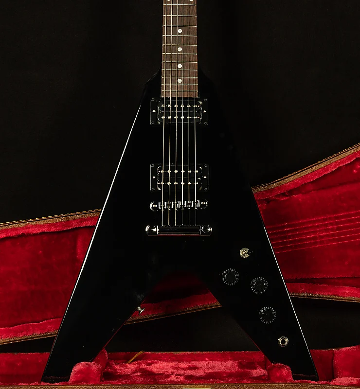 Гитара Gibson Flying V считается культовым дизайном среди современных гитаристов. Она была впервые представлена в 1958 году, а в последующие десятилетия стала постепенно набирать популярность, особенно среди гитаристов, играющих хард-рок и метал. Для многих из них именно 1980-е годы стали временем, когда эта модель по-настоящему раскрылась. Gibson 80s Flying V основана на высоко востребованных моделях 1984 года. Она оснащена быстродействующей грифовой конструкцией SlimTaper из красного дерева с грифом из розового дерева. Иконически оформленное тело из красного дерева оборудовано новыми звукоснимателями 80s Tribute, которые точно передают уникальный насыщенный звук и богатую отдачу моделей того времени. Теперь доступна в цвете Ebony. В комплект также входит жесткий кейс.