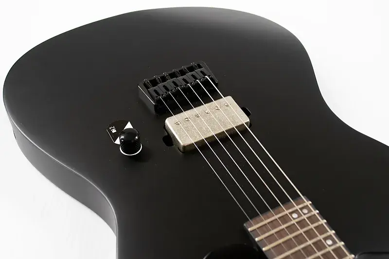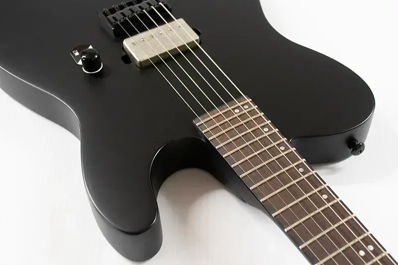 Электрогитара с цельным корпусом, корпус из махагони, гриф из клена, накладка грифа из жареного хатоба и один хамбакер - черный сатин
