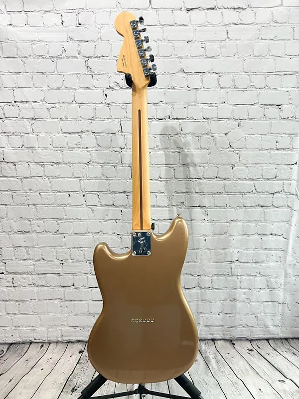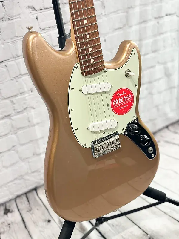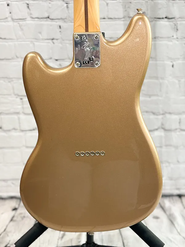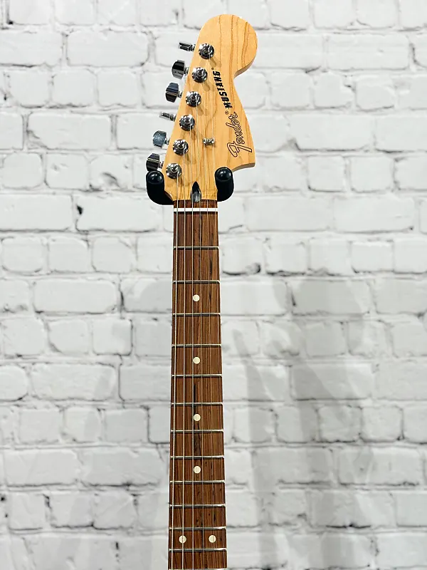 Компактное тело гитары идеально подходит для энергичных сценических выступлений и для тех, у кого меньшая комплекция, при этом сохраняя знаменитый эстетический дизайн Fender. Глянцевая полиэфирная отделка защищает корпус, а гриф имеет сатиновое полиуретановое покрытие для быстрой и легкой игры. Эстетические элементы добавляют классический стиль Fender в этот модернизированный дизайн, создавая ослепительный вид на сцене. Mustang, став культовой моделью, превратился из школьной гитары в подземного чемпиона, заложившего основу гранжа и современного альтернативного рока.