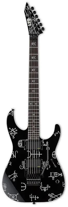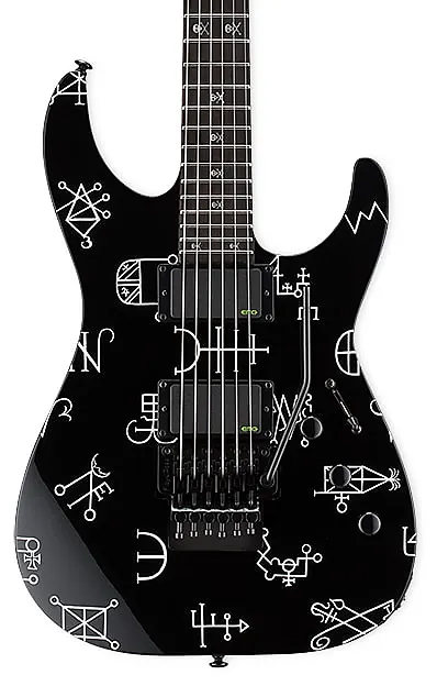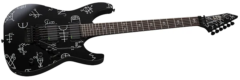 LTD KH Demonology - это следующая глава в серии LTD Signature от гитариста Metallica Кирка Хэмметта. Вдохновленная увлечением Кирка мрачным и паранормальным, эта гитара имеет потрясающую черную отделку, украшенную сигилами - древними символами, которые, как считается, обладают магической силой и вызывают темные сущности. Хотя ее эффектный дизайн отражает мистику классического хоррора, KH Demonology создана для современной игры, обеспечивая агрессивное звучание и удобство игры, необходимые для экстремального музыкального выражения. KH Demonology имеет конструкцию «neck-thru-body» с мензурой 25,5 дюйма, корпус из ольхи, трехчастный сверхтонкий гриф из клена U-образной формы и накладку из дерева Макассар с инкрустацией в виде фирменного мотива черепа и костей Кирка. Звукосниматели EMG Kirk Hammett Bone Breaker предлагают универсальный тональный диапазон, дополненный двумя регуляторами громкости и регулятором тона. Оснащенная тремоло Floyd Rose 1000 и поставляемая в специальном кейсе Tombstone, эта гитара столь же завораживающая, как и ее дизайн. мощный.