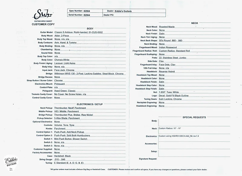 Для получения дополнительной информации о Suhr Classic Antique, пожалуйста, свяжитесь с нас.