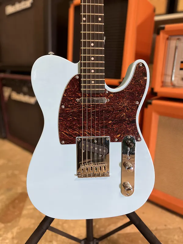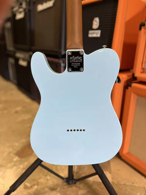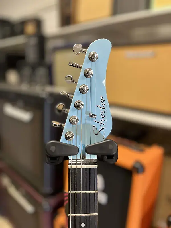 PT R66 SCHECTER VINTAGE SIXTIES S/S - Электрогитара с 6 струнами - Серия R66 Vintage - Конструкция: Bolt-on - Корпус: Ольха - Гриф: Клен roasted Thin C - Мензура: 25,5" (648 мм) - Грифовая накладка: Палисандр - 22 ладa X-Jumbo - Радиус: 14'' - Головка: Graph Tech XL Black Tusq 42 мм - Маркеры ладов: Точки - Крепление звукоснимателей: Черепаховое - Звукосниматели: 2x Single Coil Schecter PT Pasadena Vintage VT-1 - Регулировки: 1x Тон + 1x Громкость + 3-позиционный переключатель - Мост: Schecter PT Vintage - Колки: Самоблокирующиеся Schecter - Фурнитура: Хромированная - Цвет: Sonic blue с накладкой под цвет корпуса - Отделка: Глянцевая.