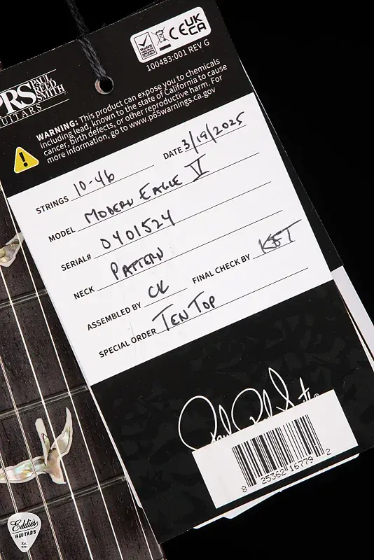 Весит 8 lbs 3 oz и поставляется в жестком футляре PRS Hardshell Case, эта Modern Eagle V - не просто гитара, это произведение искусства. Она олицетворяет жизненное посвящение Пола Рида Смита ремеслу, его стремление к инновациям и непреклонную приверженность созданию инструментов, вдохновляющих музыкантов на новые вершины.