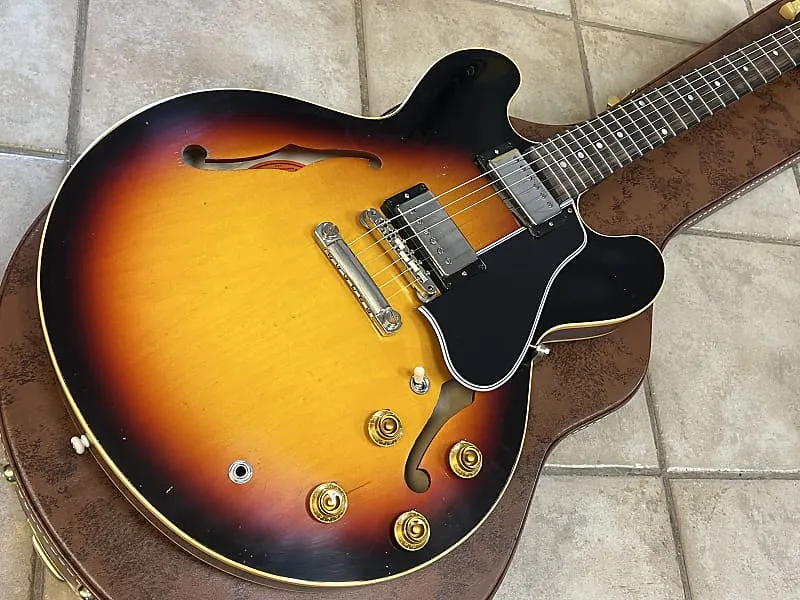 Эта тщательно созданная реплика гитары ES-335 1958 года впечатляюще чествует наследие Gibson, аутентично воссоздавая революционную полугибридную электрогитару, которая навсегда изменила музыку в 1958 году. Она повторяет оригинальные характеристики, такие как корпус из трехслойного клена, гриф из красного дерева, накладка из индийского палисандра с точечными инкрустациями и нитроцеллюлозное покрытие. Благодаря винтажным элементам, таким как мост ABR-1, тюнеры Kluson, золотые регуляторы Top Hat и другим, вы почувствуете... как будто вы играете на оригинальной ES-335 1958 года.