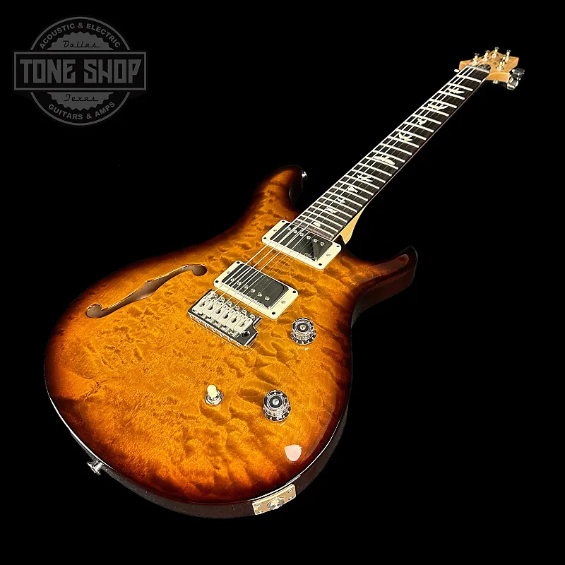 Сочетая яркость и сустейн гитары с прикрепленной к корпусу шейкой и воздушную резонансность полузакрытого корпуса, CE 24 Semi-Hollow является по-настоящему уникальным дополнением к линейке PRS Bolt-On. Корпус сочетает традиционное сочетание задней части из махагони и кленового верха с прикрепленной к корпусу кленовой гитарной шейкой и грифом из палисандра. Гриф выполнен с резьбой Pattern Thin и сатиновым нитро-лаком для естественного и приятного ощущения при игре. Электроника состоит из регулятора громкости и тон-контроля с функцией push/pull и 3-позиционного переключателя, давая всего шесть классических звуков звукоснимателей PRS 57/08.