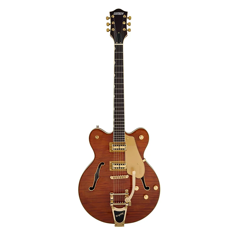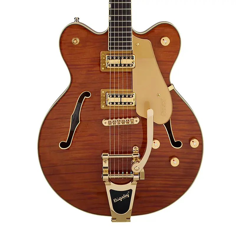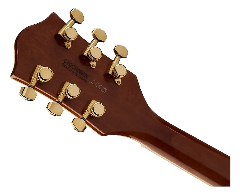 С красивым корпусом из окуме с двойным вырезом, грифом из палисандра, звукоснимателями USA Full’Tron, декоративными ручками управления G-Arrow и золотой фурнитурой, элегантный стиль и премиальное качество звука этой Limited Edition Broadkaster обязательно привлекут внимание.